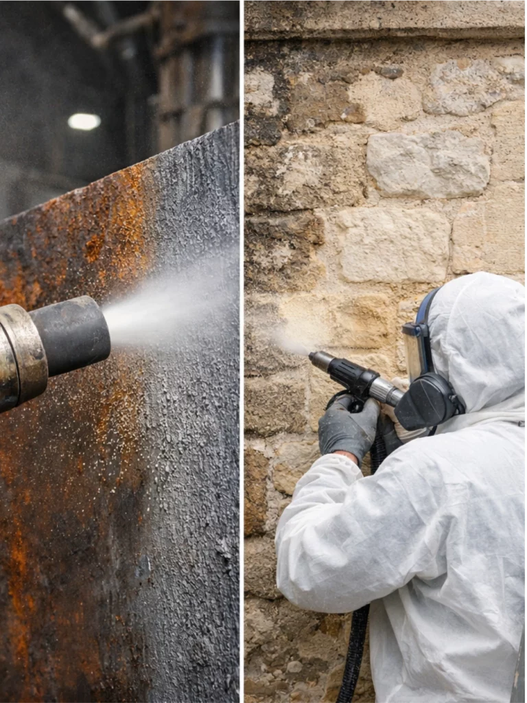La sableuse à jet libre et l’aérogommeuse ne s’opposent pas : elles répondent à des besoins industriels distincts.