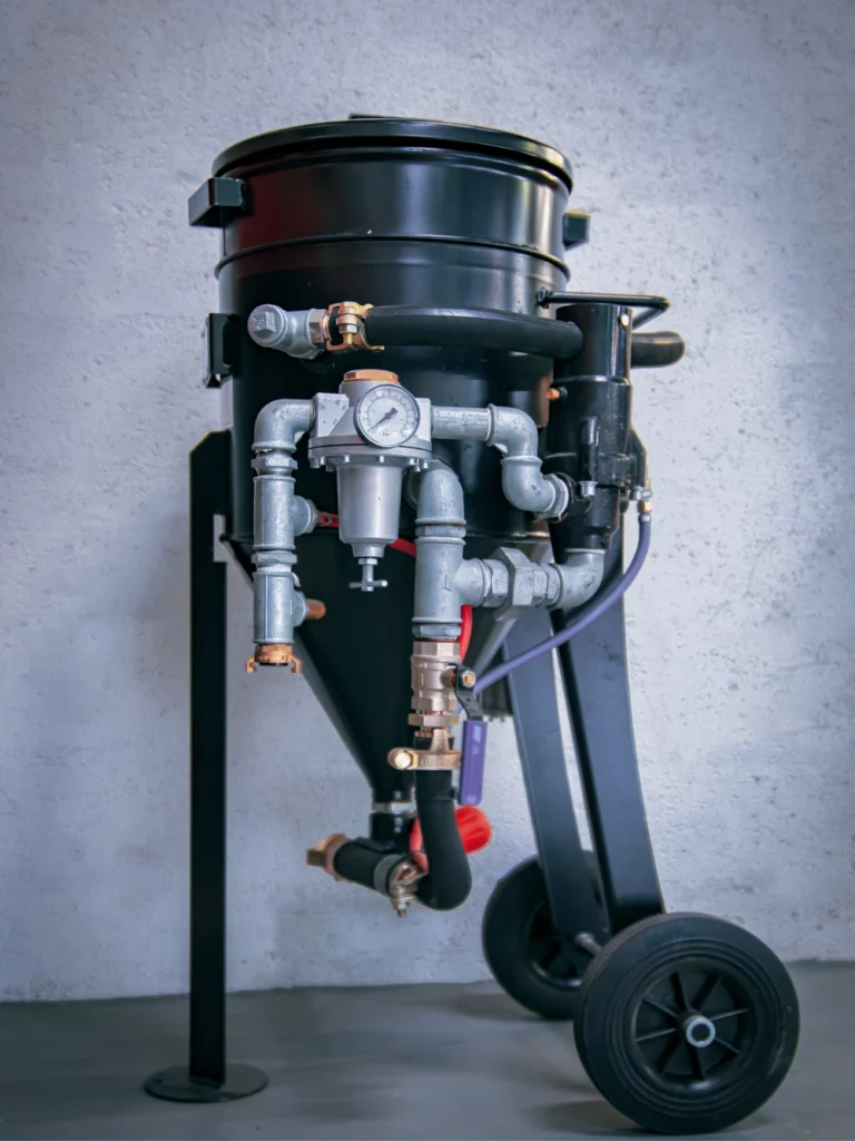 Une sableuse à jet libre est un équipement de projection d’abrasif à haute énergie cinétique, utilisant de l’air comprimé pour propulser des particules abrasives à grande vitesse sur une surface.